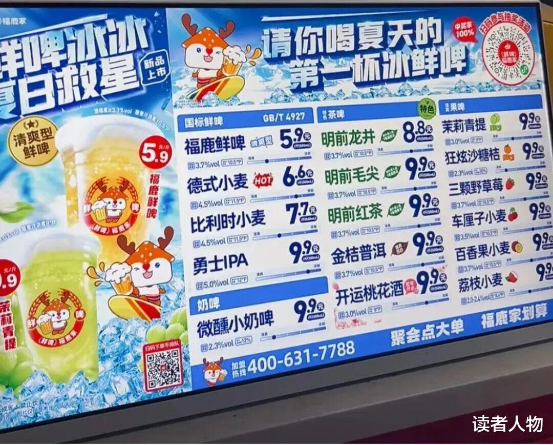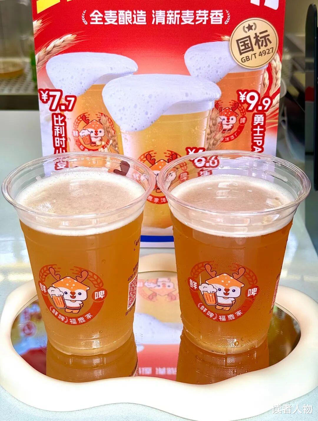 走进鲜啤福鹿家,你会怀疑自己是不是误入了“啤酒版的蜜雪冰城”。