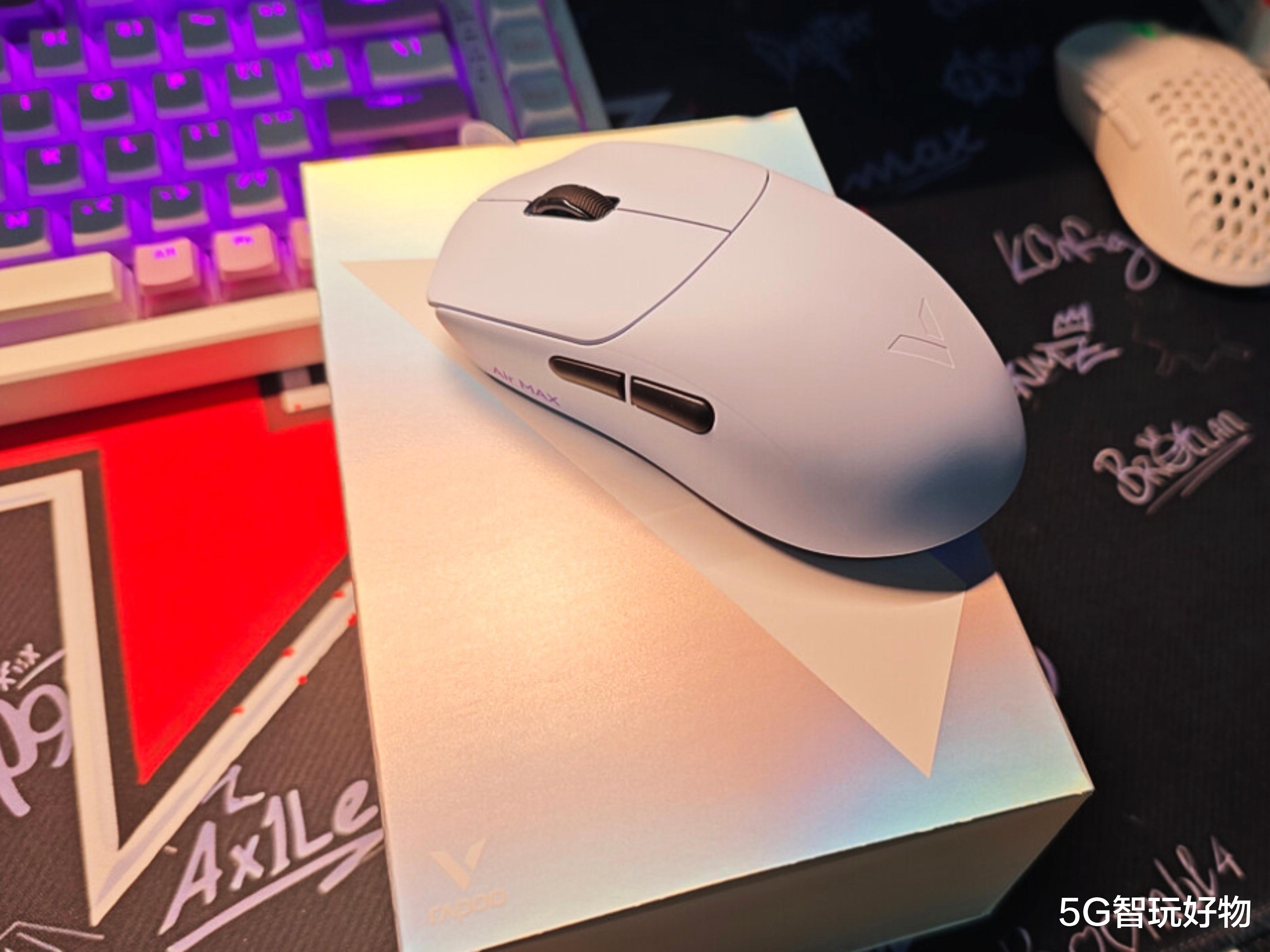 再讲讲很多我周围朋友最关心的握感和重量,这对中小手来说太重要了。VT0 Air Max是右手对称设计,轻量化设计,拿在手里特别轻,几乎没什么负担,抓握、指握都很贴合,手心能自然包住鼠标,长时间玩《三角洲行动》也不觉得手指累 。
