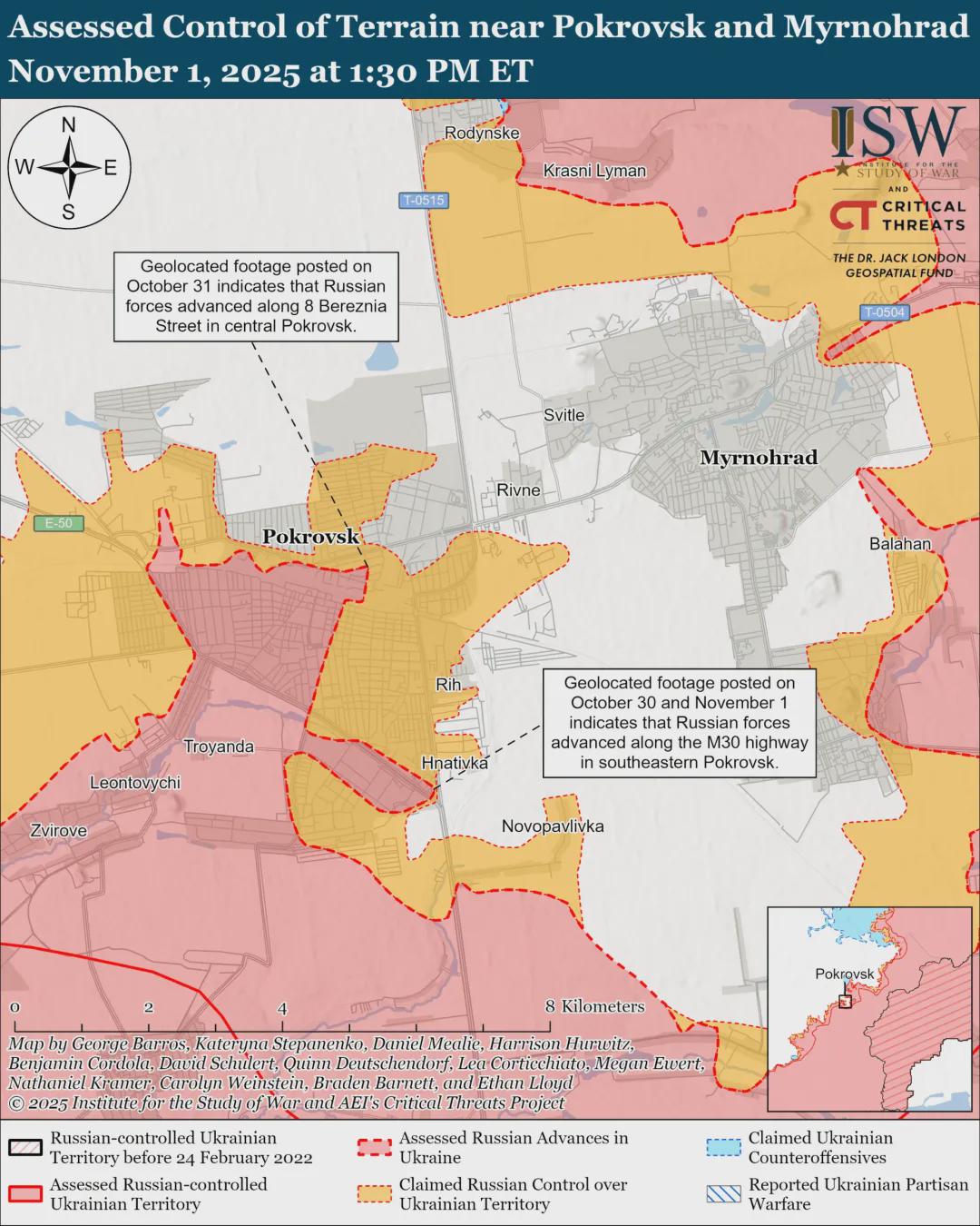 值得注意的是,在美国战争研究所11月4日公布的报告中,其仍主张「俄军尚未完全控制整个红军城,但承认俄军在红军城中部和北部有所进展,战斗仍在激烈进行当中」。