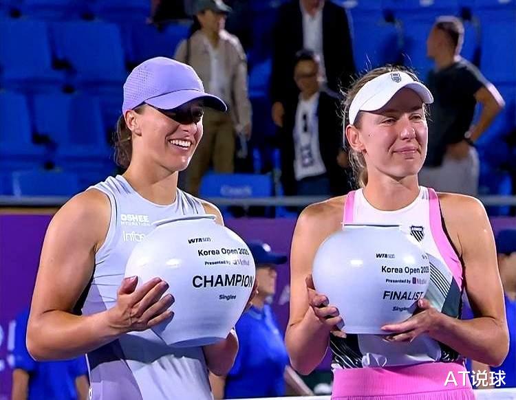 在刚刚结束不久的韩国网球公开赛WTA500首尔站上,拿到女子单打冠军和亚军的斯瓦泰克与亚历山德洛娃别捧着一个白色的罐子,这就是她们的冠亚军奖杯。