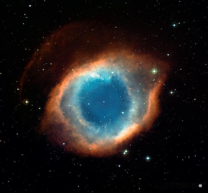NGC7293是位于宝瓶座的一个行星状星云,距离我们约655光年,是距离我们最近的行星状星云之一,于1824年由天文学家卡尔·哈丁发现。NGC7293的亮度约7.3等,只有通过望远镜或照相技术才能进行观测。它之所以出名也是因为它在照片中的形态像一只巨大的眼睛悬挂在深邃的夜空之中,于是得名“上帝之眼”。比起梅西叶星表中著名的行星状星云M27和M57,它的面亮度稍逊于前两者,但它的角直径更大,达到了近18角分,比半个月球直径还要大。本世纪初,随着电影《魔戒》的风靡,NGC7293也被大众称为“索伦之眼”。