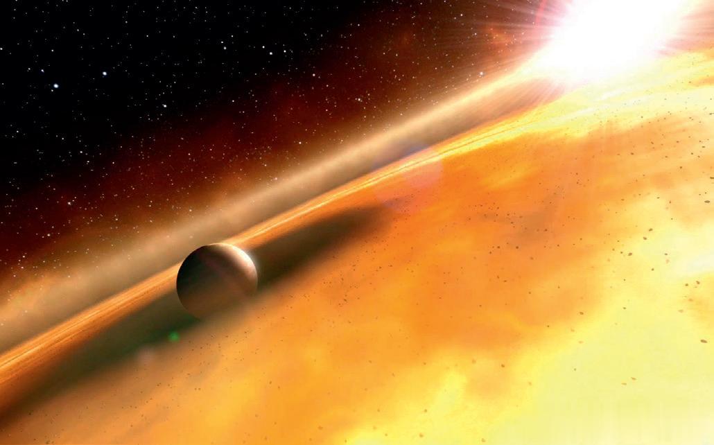 秋季夜空中只有一颗星可以排进全天21颗亮星星表之列,它就是位于南鱼座的北落师门,亮度为1.2等。北落师门是一颗年轻的恒星,距离我们约25光年,表面温度约8300℃,质量大约是太阳的1.92倍,发光能力却是太阳的16.6倍。2008年,天文学家利用光谱观测在北落师门附近发现有尘埃盘结构,并在外层尘埃盘中发现了一颗系外行星,这是哈勃空间望远镜在可见光波段捕捉到的第一颗系外行星,图为这颗系外行星的艺术想象图。
