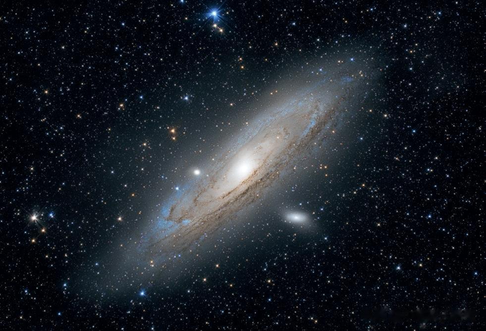 仙女座大星系(梅西叶星表编号为M31)或许是我们不借助望远镜肉眼可见最遥远的明亮天体。不过仅凭肉眼你是很难发现这团模糊的白色光斑其实是一个比我们的银河系还要大许多的旋涡星系。约100年前,埃德温·哈勃利用造父变星测量出了M31的距离,发现它远在银河系之外。这一发现不仅确认了河外星系的存在,哈勃本人被称为星系天文学之父,也大大扩展了人类认识宇宙的范围。作为本星系群中最大的星系,M31的直径达到20万光年,包含有超过1万亿颗恒星,距离我们约250万光年。图为天文爱好者拍摄的仙女座大星系。