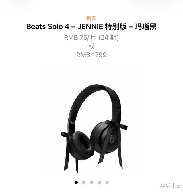 苹果今天在官网 Apple Store 悄悄上架了旗下音频设备品牌 Beats 的特别版新品 —— Beats Solo 4 - JENNIE 特别版 - 玛瑙黑。