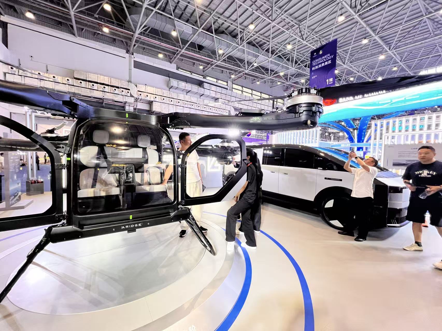 戴上一枚戒指,便可以记录实时心率,管理健康数据;戴上AI翻译眼镜,与外国友人对话可以实现无障碍交流;输入小区名字,家装AI机器人设计师就能秒出家装设计方案;露营时想飞上天空感受美景,可陆上驾驶,也可飞上天空的分体式飞行汽车将能实现这一愿望……