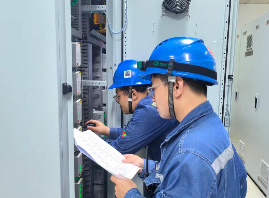 在机柜改造环节,各小组负责人多次碰头核准改造方案,密切关注改造进度。施工队员们齐心协力,高效解决了电缆拆除与接线过程中的各类难题。机柜负责人有序进行拆线验电,确保每一步操作安全可靠;吊装人员严阵以待,旧机柜移除与新机柜吊装工作一气呵成,展现了高超的专业技能。新机柜安装完成后,机柜负责人严格检查配线接线情况,并及时将检查情况反馈给施工队员,确保接线工作符合标准化要求。通过各环节的紧密配合和高效作业,团队提前三天完成了全部45面机柜的上电工作,为后续调试争取了宝贵时间。