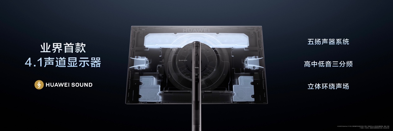 在听觉维度上,全新一代华为MateView GT显示器同样带来了降维打击,支持华为悦彰音效,整机内置了多达5个扬声器,构建出极具沉浸感的4.1声道三分频环绕声场。独立低音单元配合左右全频与高频扬声器,让高音通透、人声圆润、重低音强劲有力。这种声场抬升至人耳平齐高度的设计,让用户在观影或玩游戏时,无需外接音箱就能享受到澎湃的立体音效。对于游戏玩家,它还支持高刷新率以及双模切换功能,配合暗阶增强、动态准星和动态模糊消除等竞技特性,让流畅丝滑的操作感与震撼音画完美融合。