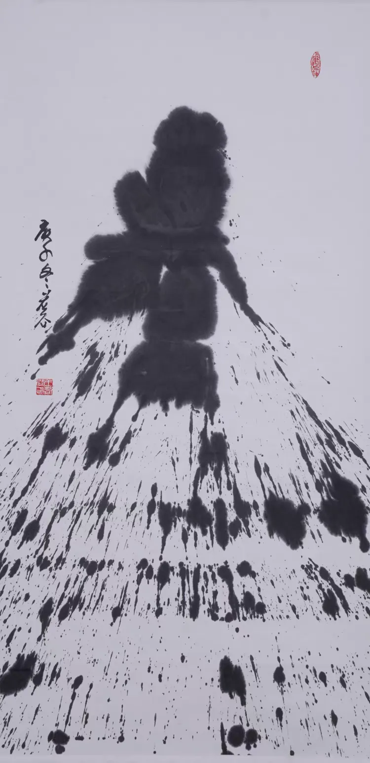泼墨与破墨结合,用墨点飞溅模拟山石肌理,留白处尽显东方美学的“虚实相生”。