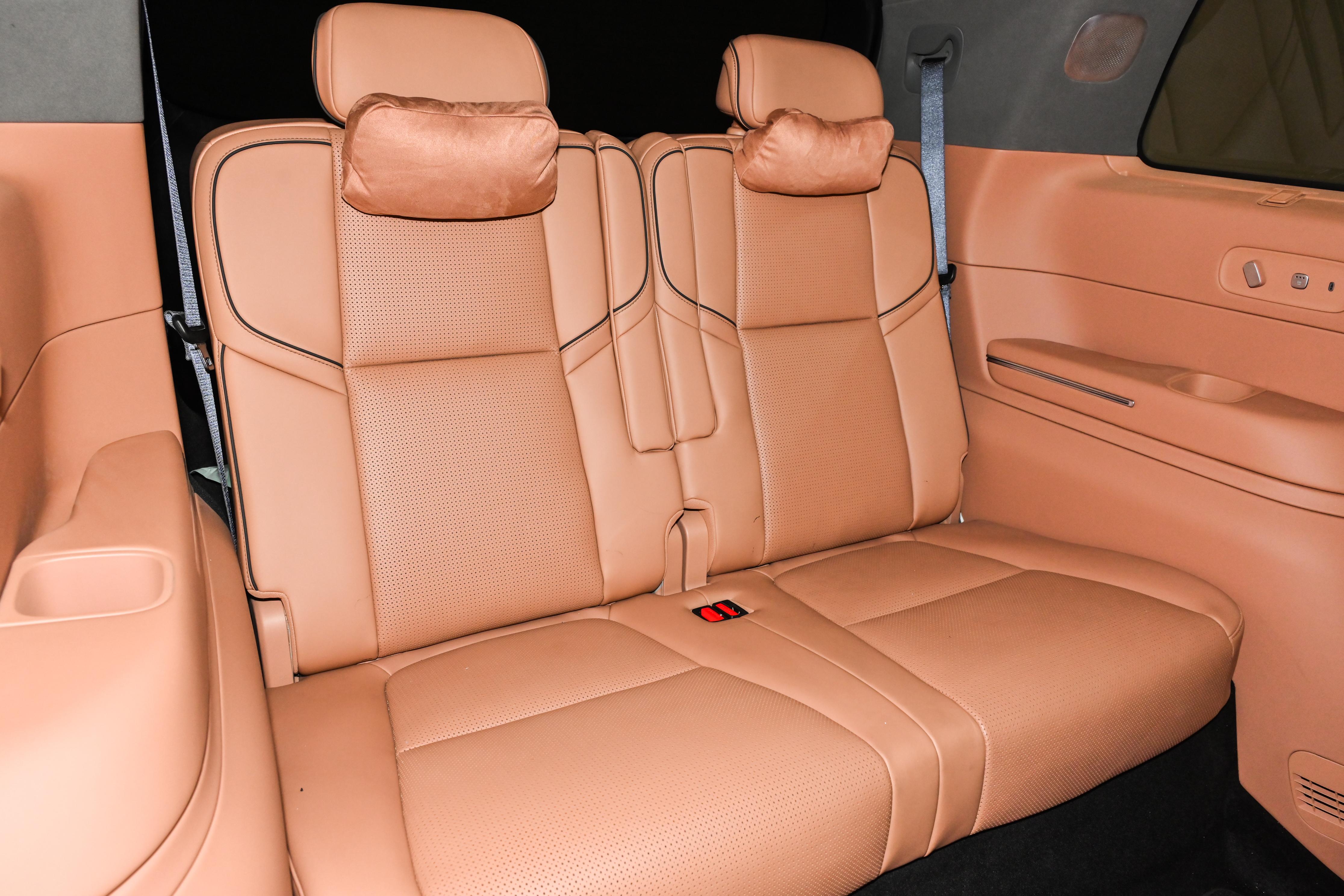 第三排的空间表现也超出预期。得益于超长轴距,180cm身高的乘客坐在第三排也不会感到过于压抑。靠背支持131度调节,还有加热功能,日常家用完全够用。而且第三排支持一键电动折叠,操作起来很方便。