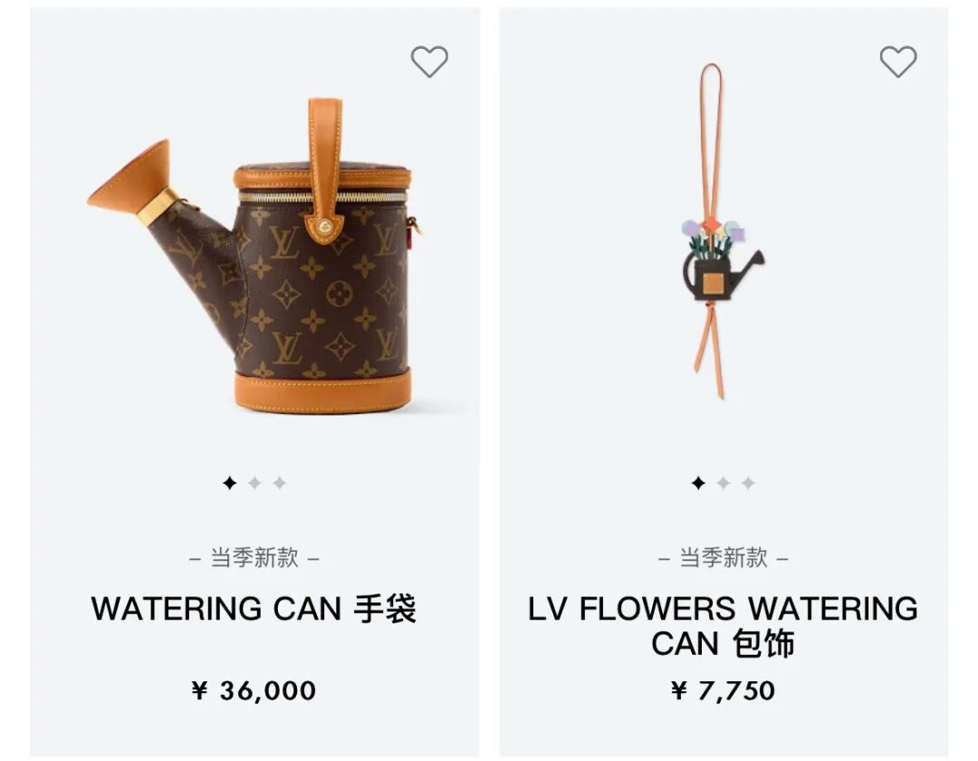 这款名为“Watering Can”(译为洒水壶)的男士手袋,外观形似园艺洒水壶,售价3.6万元,配套水壶挂件售价7750元。