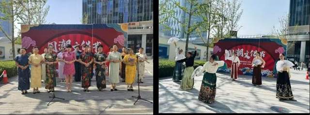 市集旁的舞台区,更是掌声不断。这场演出没有专业明星,主角全是社区里的“文艺达人”—— 保利绿地商务公寓工作站组建的国潮文化队伍,用歌声和舞姿点燃了现场氛围。