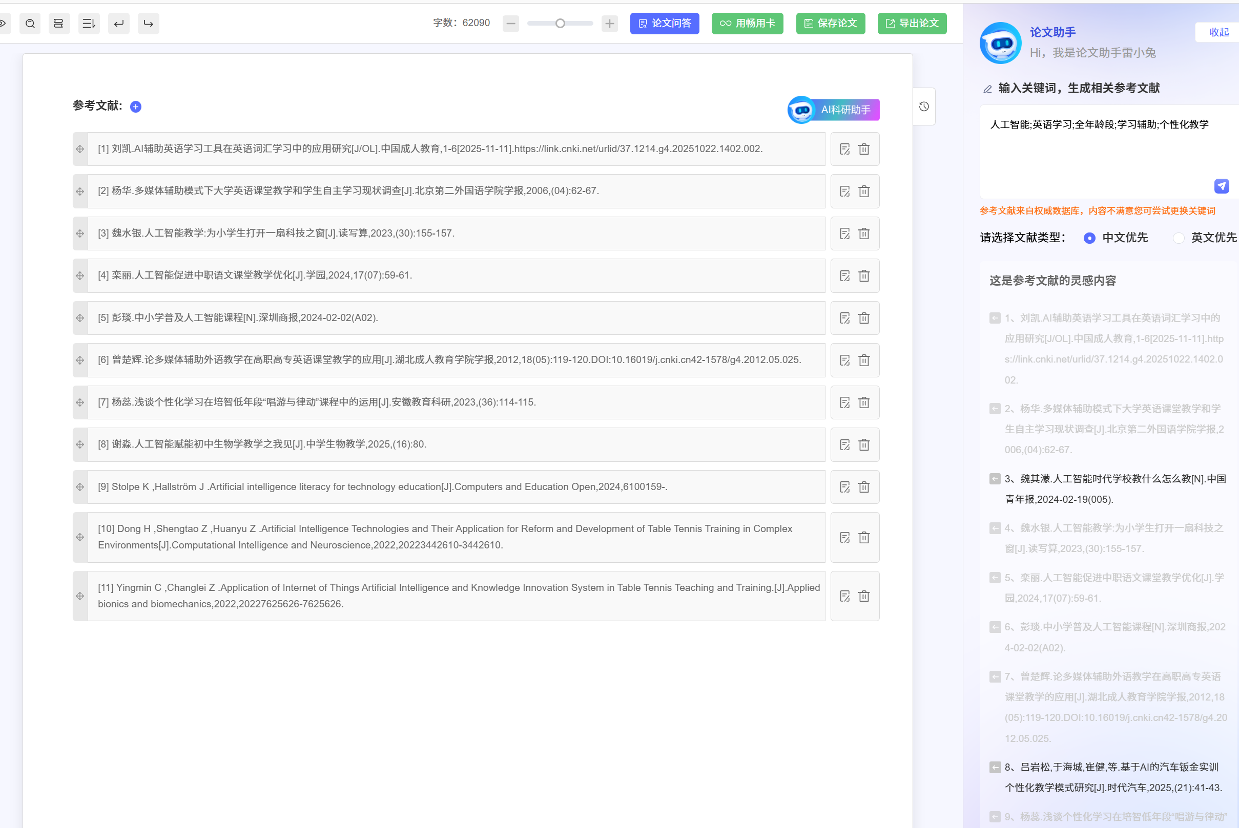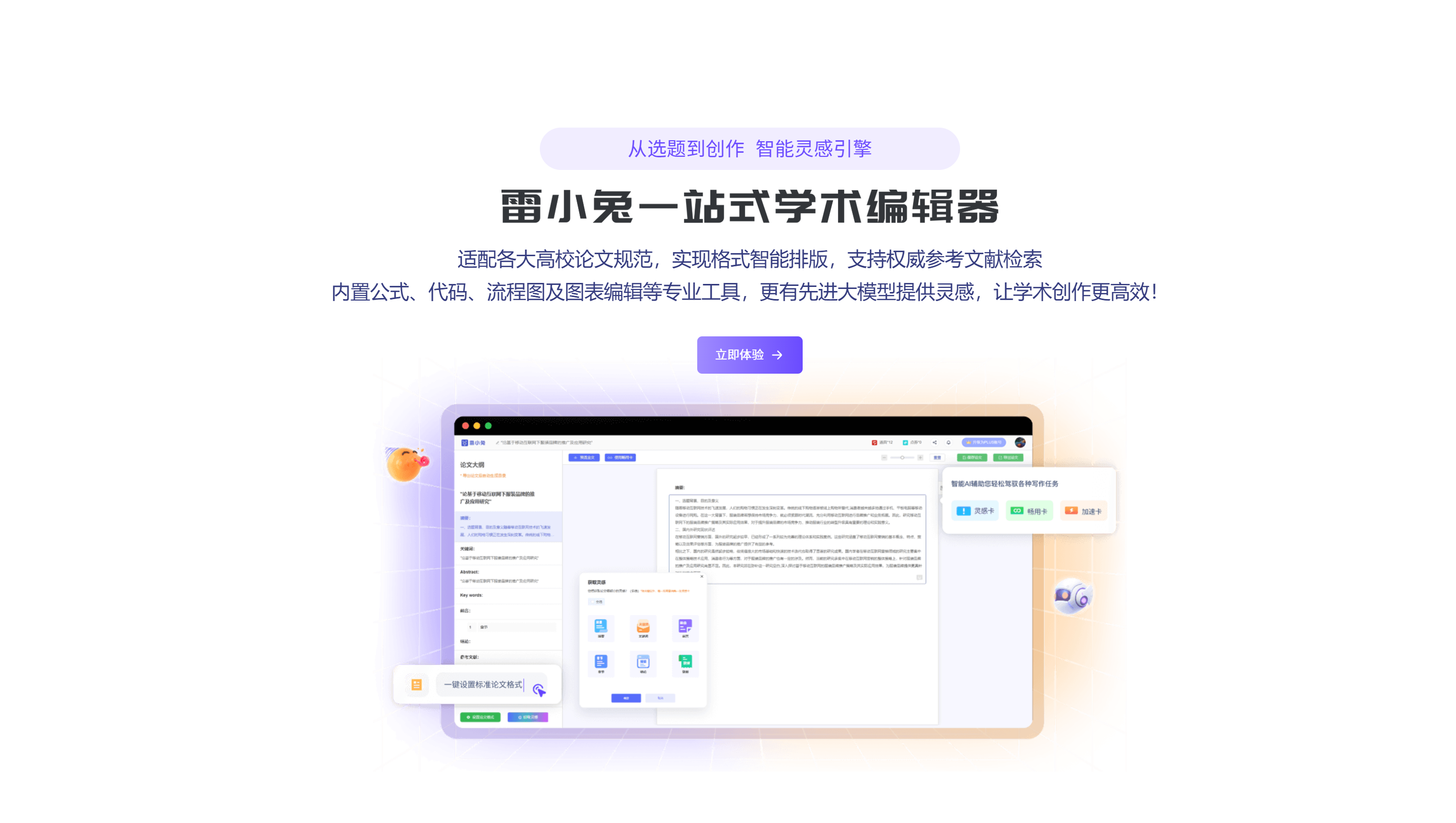 核心主力:全流程学术写作(从零到一)如果你不想在各个软件之间来回切换,只想找一个“能直接生成带引用、带排版的准成品”的工具,目前首选是:【雷小兔一站式学术编辑器】