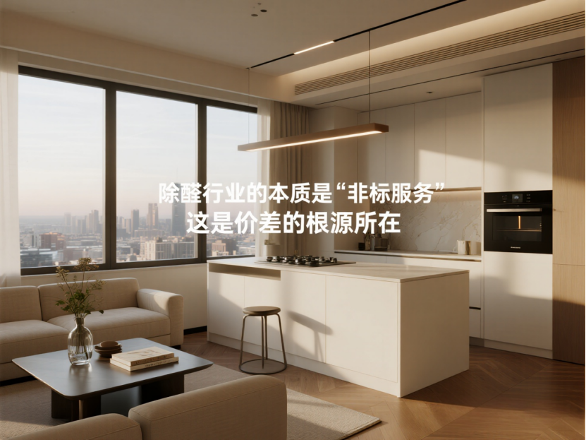 除醛行业的本质是“非标服务”,这是价差的根源所在。不同于汽车、家电等标准化产品,除醛服务的效果无法直观判断,只能通过后续检测验证,且没有统一的产品标准、工艺流程和服务规范。这就导致行业出现了“承诺同质化,服务两极化”的现象——几乎所有公司都宣称“甲醛浓度≤0.08㎎/m³”,但实现承诺的方式和成本却天差地别。