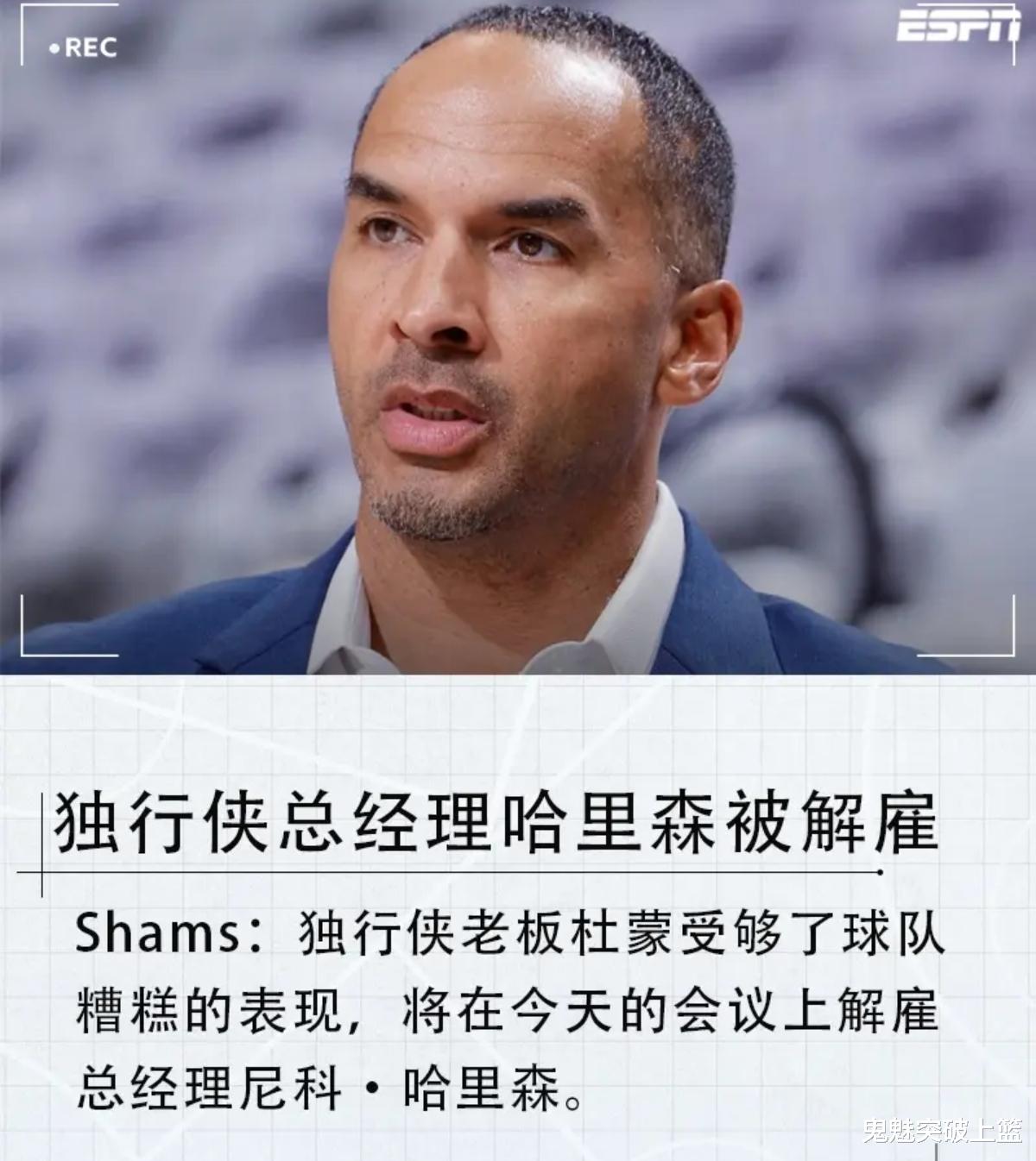 据ESPN名记Shams此前报道,达拉斯独行侠老板杜蒙将在今日球队会议上解雇总经理尼科哈里森。