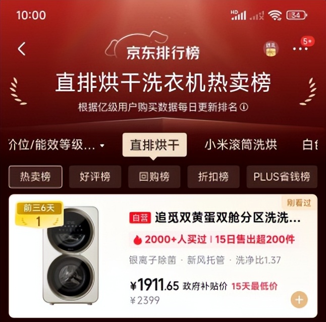 追觅洗衣机的另一款明星产品——“双黄蛋”的爆火,则源于其对细分场景的极致洞察。“双黄蛋”独特的双舱双洗烘分区设计,精准适配了现代家庭分区洗护的需求,无论是婴儿衣物还是成人内衣,都能找到专属的洗护空间,避免交叉感染,集“提效率”与“保健康”于一身,在上架之初就登顶京东等电商平台榜首,深受消费者青睐。在春节高负荷洗护场景中,“双黄蛋”的这一特点无疑更显优势。