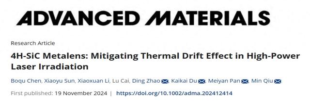 日前,相关论文以《4H-SiC 超透镜:抑制高功率激光辐照的热漂移效应》(4H-SiC Metalens: Mitigating Thermal Drift Effect in High-Power Laser Irradiation)为题发表在 Advanced Materials 上 [1]。