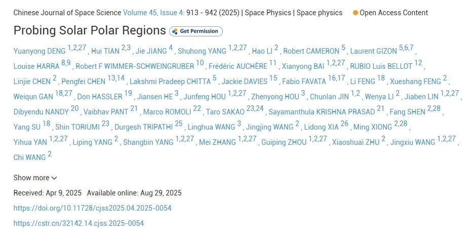 中国科学院国家天文台邓元勇、北京大学田晖发表在《空间科学学报》(Chinese Journal of Space Science, 2025, 45(4): 913–942)的论文《探测太阳极区》,报道了中国科学家发起主导,来自全球数十个科研机构的国际团队共同合作的项目SPO。