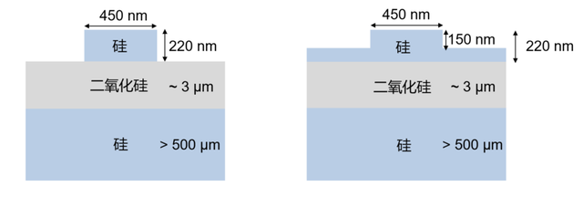 图8:硅波导结构,左图为条型波导,右图为脊型光波导(图源:作者手绘)