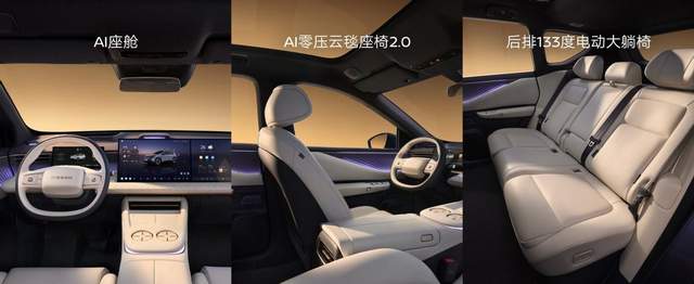 ·AI大沙发,主驾搭载AI零压云毯座椅2.0,高精度传感器升级为53个,新增肩部、臀部的自适应支撑点位,能够实时探测全身压力变化,精准调节每一个气囊的支撑力。前排AI零重力座椅,后排133度电动大躺椅,前后排标配电动调节、通风、加热、按摩功能,真正做到“座座皆C位”;