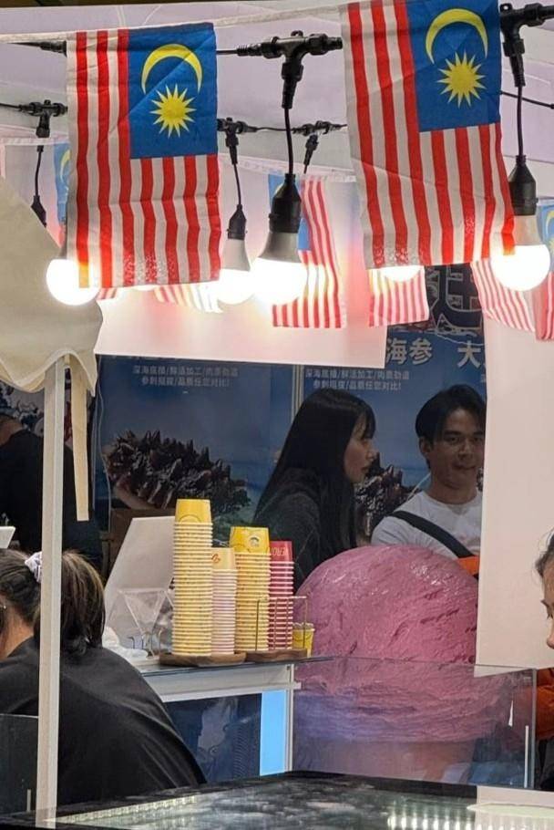 不过由于身份的原因,在人群中,二人还是比较亮眼的,见到二人还更是来到了一个售卖马来西亚榴莲产品的档位挑选。