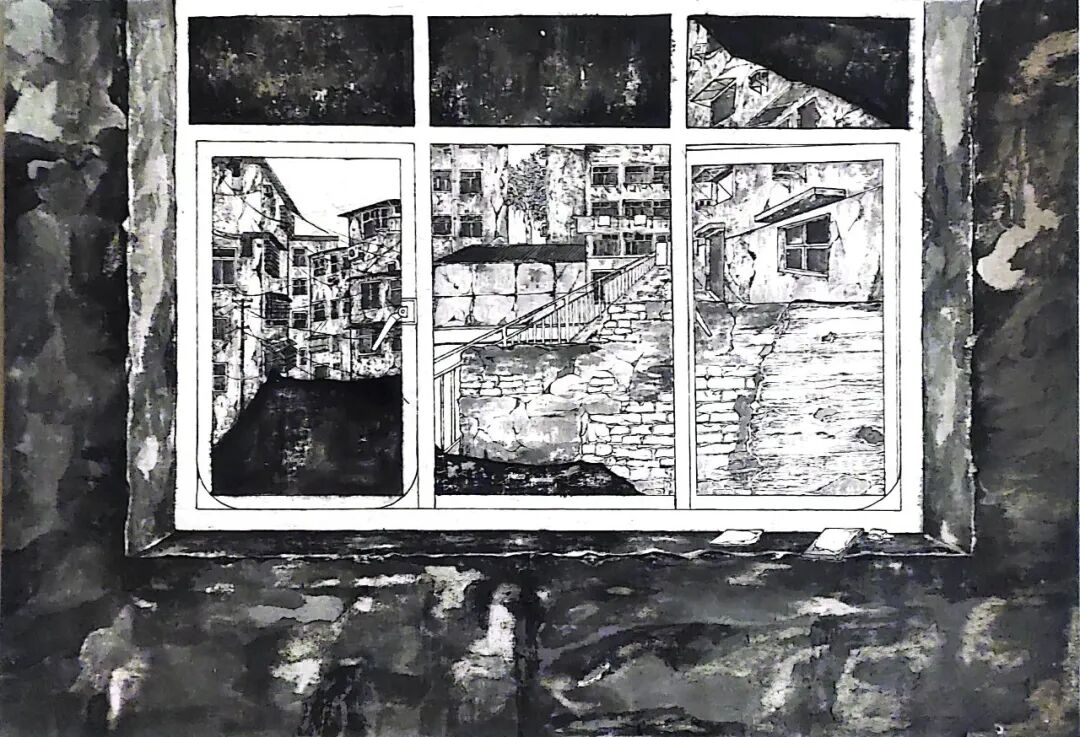《残牖窥城》67cm×44.9cm 纸本水墨 2025年