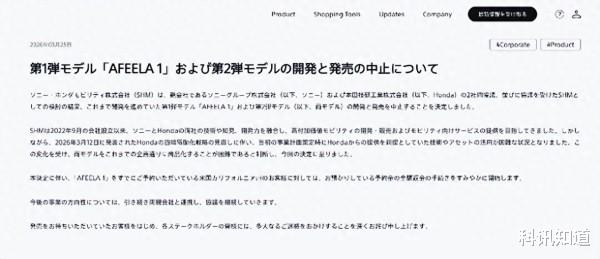 为减少影响,SHM将向所有AFEELA 1预订用户全额退款。索尼方面表示,此次调整对其财务影响有限,因SHM采用轻资产模式;本田则称不影响2026财年整体预期,但此前已因取消北美0系列电动车项目计提数百亿日元减值准备。
