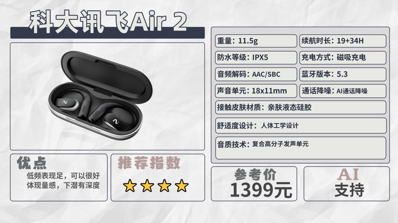 推荐五:科大讯飞Air 2(1399元)推荐指数:⭐⭐⭐⭐机型亮点:续航时间够长,日常时间使用不会有充电焦虑