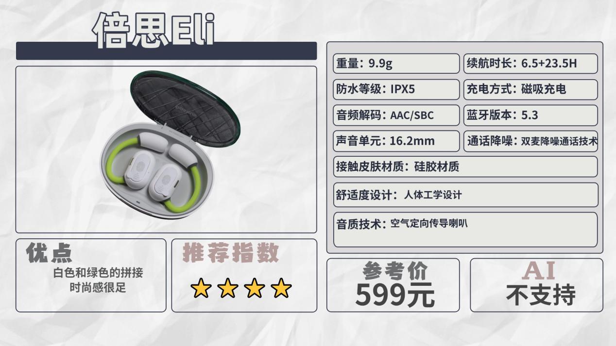 推荐六:倍思Eli(599元)推荐指数:⭐⭐⭐⭐机型亮点:时尚感很足,颜值党可以入手