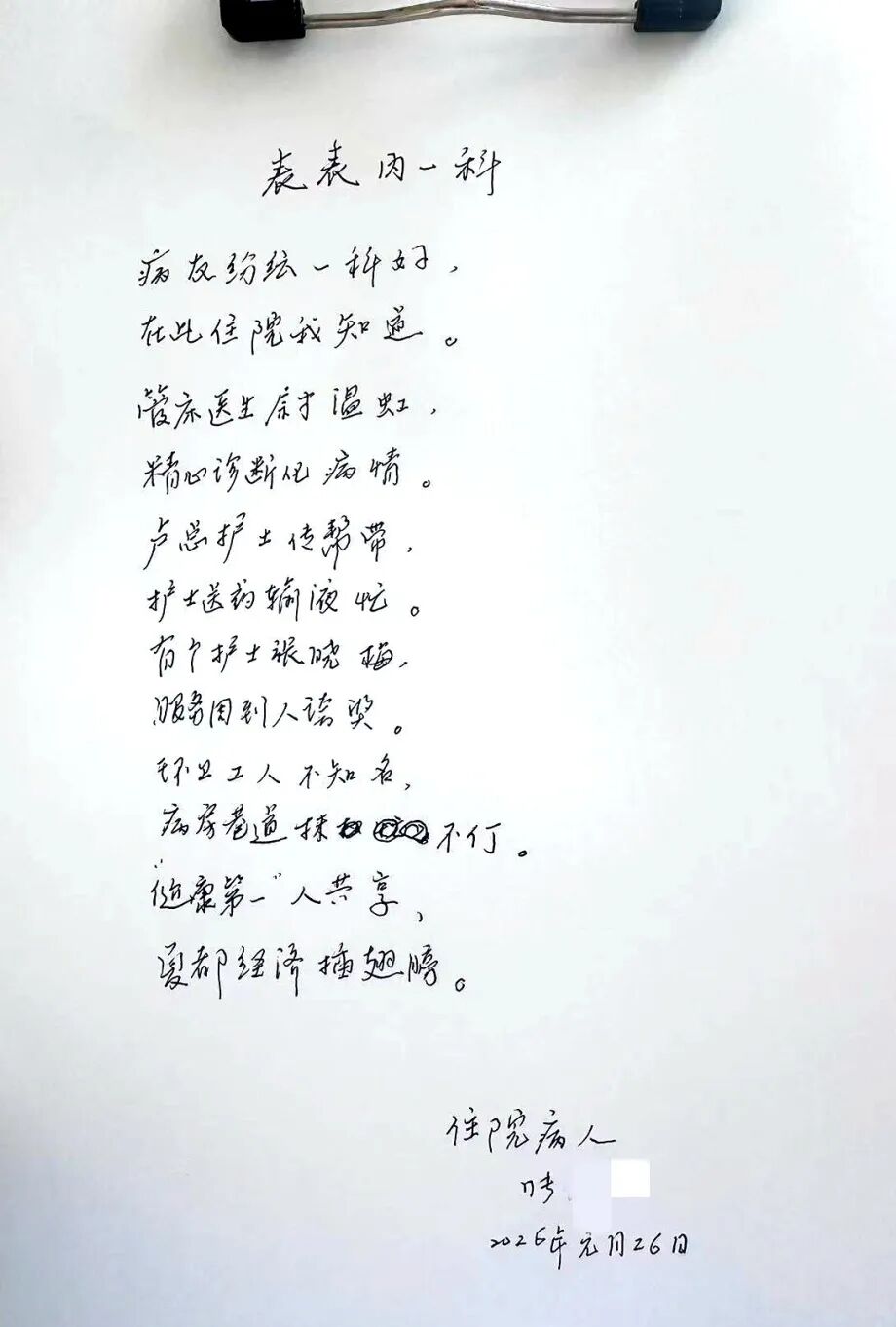 近日,夏县人民医院内科一病区收到了一封特别的感谢信。写信的是80岁的张爷爷,他于1月23日因病入院,经过医护人员精心诊疗,在康复出院之际,老人执笔写下真挚感言,字里行间满是对医护团队的赞扬与感激。