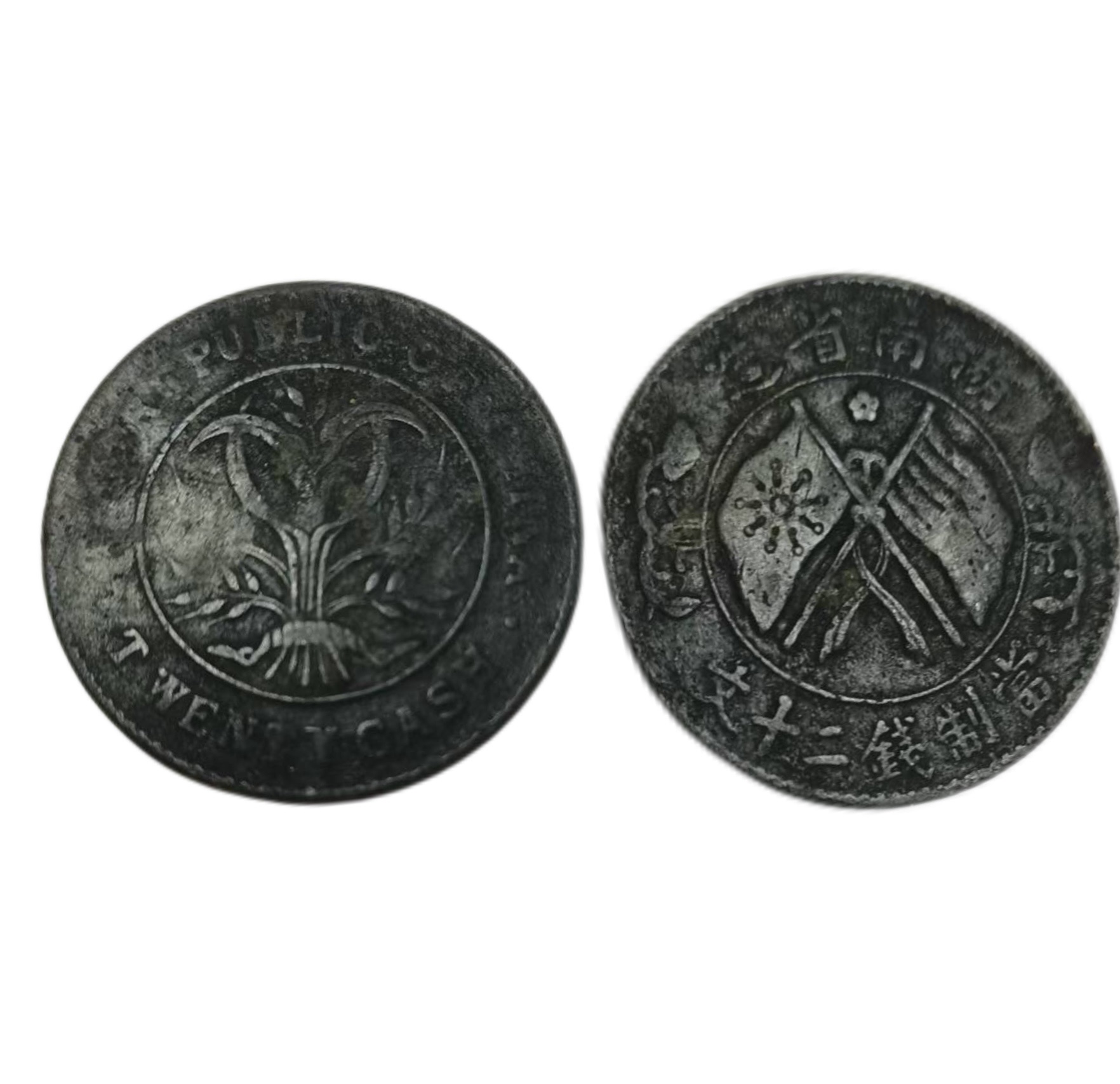(二)民国政府的货币整顿1912 年中华民国成立后,新政府面临着整顿金融秩序、稳定货币体系的迫切任务。一方面,要清理晚清遗留的劣质铜元;另一方面,要建立统一、规范的货币制度。在此背景下,各省纷纷成立造币厂,铸造新的铜元,湖南省造双旗当制二十文就是这一时期的产物。