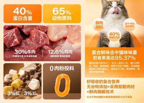 ③价格更实惠:单独买猫粮,再买冻干,加起来肯定不便宜。而冻干猫粮,既有营养全面的主粮又科学搭配了冻干,性价比直接拉满。