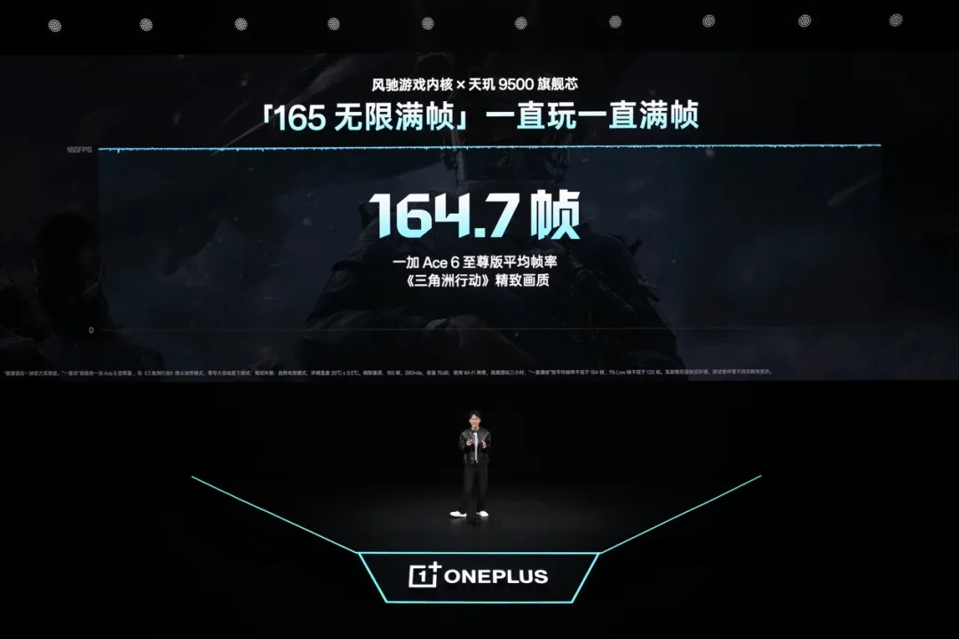 在联发科当代旗舰芯天玑 9500移动平台与独家自研芯片级游戏技术新一代「风驰游戏内核」加持下,一加 Ace 6 至尊版带来领先同档的165 无限满帧体验和1% Low帧表现。同时,一加拥有行业最丰富的165超高帧游戏生态,以及超高刷与顶级画质同开体验优势。
