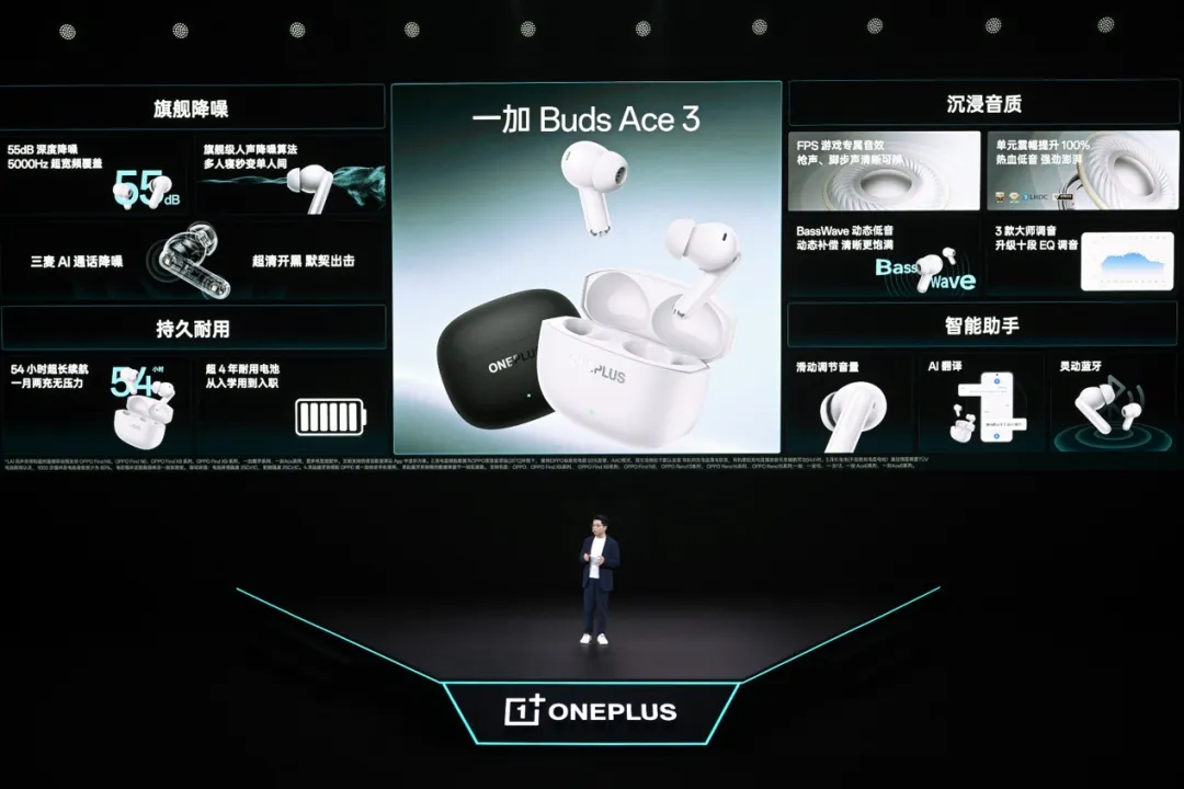 同台发布的还有耳机新品一加 Buds Ace 3,兼具强悍降噪、沉浸音质与智能体验,其采用55dB旗舰降噪,有效隔绝宿舍、办公、通勤等各类环境噪音;支持54小时超长续航,轻松覆盖长时间游戏娱乐与日常出行需求;内置FPS游戏专属音效,单元振幅提升100%,听声辨位更准,手游对战氛围感拉满;同时支持滑动调节音量、AI同声传译和面对面翻译等功能。此外还有一加40W超级冰点磁吸散热器、一加 120W 超能舱超级闪充移动电源等散热、充电配件新品,全面加持玩家极致游戏体验。