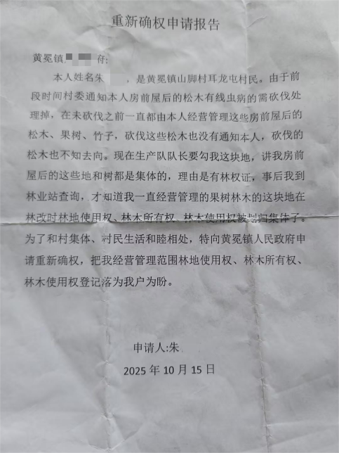 朱某表示,2009 年林改期间,自己从未接到过关于该地块权属变更的任何通知,多年来始终将其视为自身经营用地,持续进行管理与投入。更让他难以理解的是,此次权属变更后生成的林权证,自始至终未对外公布。
