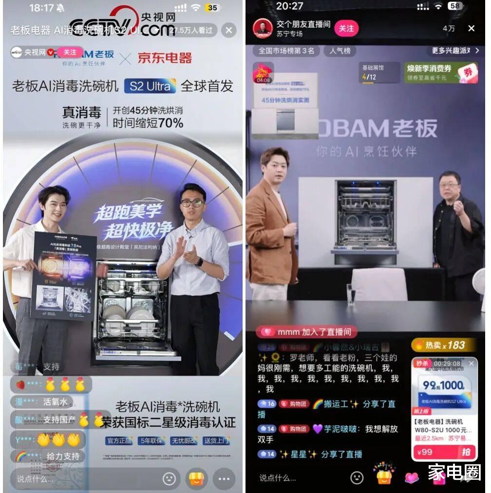 在家电圈看来,S2 Ultra的上市绝非一款旗舰产品的简单升级,上市之初便重磅登陆央视网直播间开启全球首发仪式,以国家级平台彰显行业级突破。此后,又亮相“交个朋友”直播间,成为罗永浩亲自推荐的洗碗机年度重磅新品。这也标志着老板电器彻底跳出传统赛道的价格战、概念战,以用户需求为核心、以厨房场景为支撑,开辟出一条差异化创新之路,不仅有望激活洗碗机市场的增长活力,更将重构洗碗机在厨房场景中的价值定位。