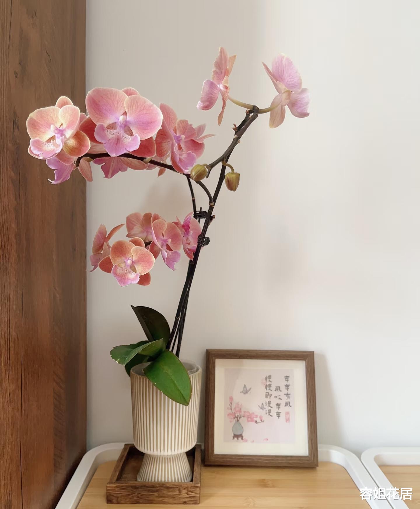 开花期的蝴蝶兰,并不是说散射光越多越好,相反的要柔和一些,可以养在室内明亮的地方。