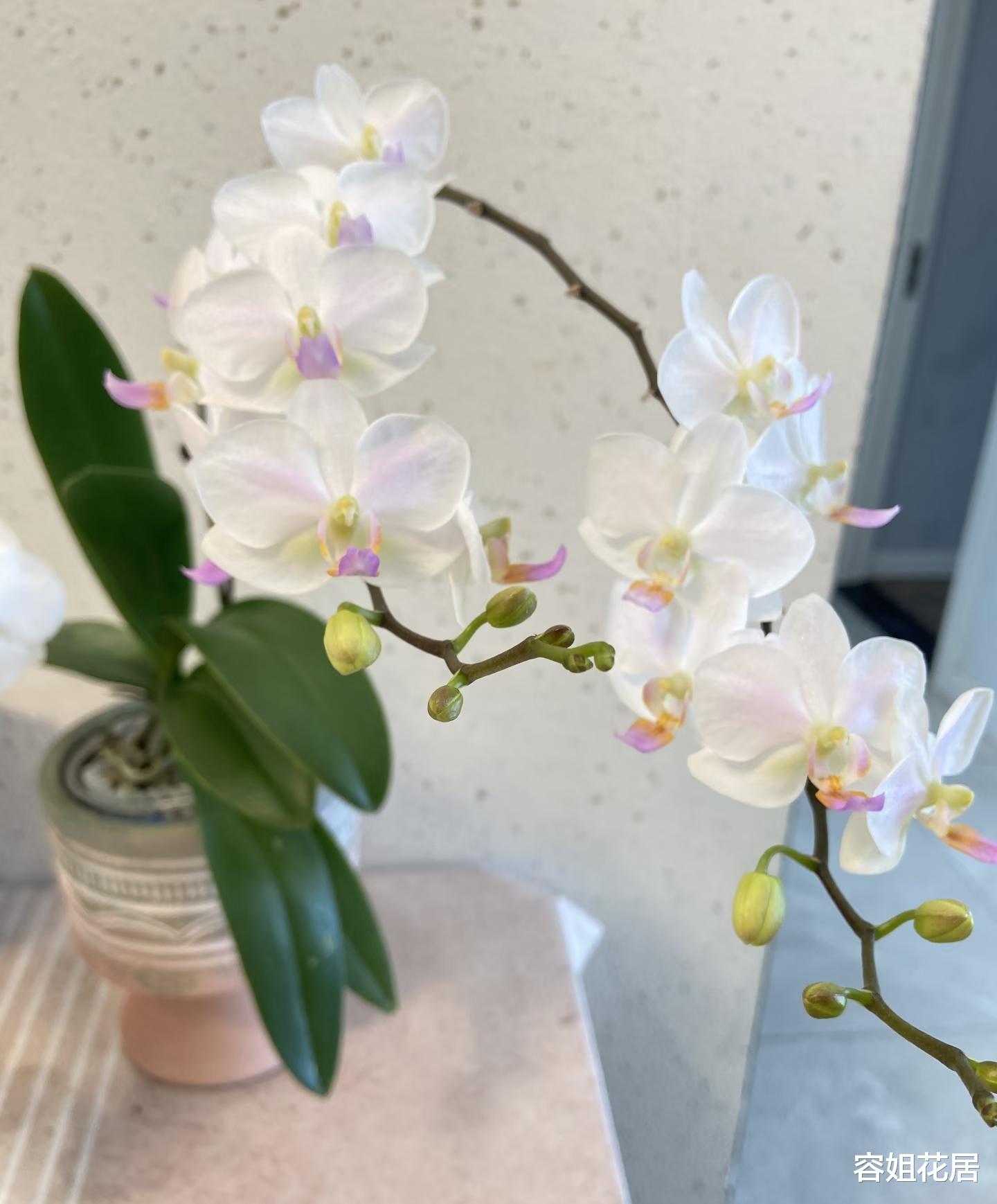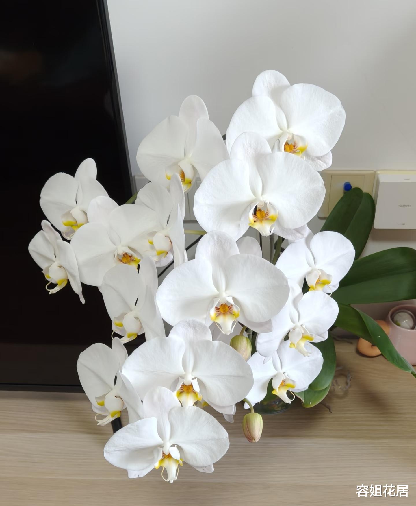 有网友说,养的大白v3蝴蝶兰,是养过的蝴蝶兰中花期最长的,能够长达11个。