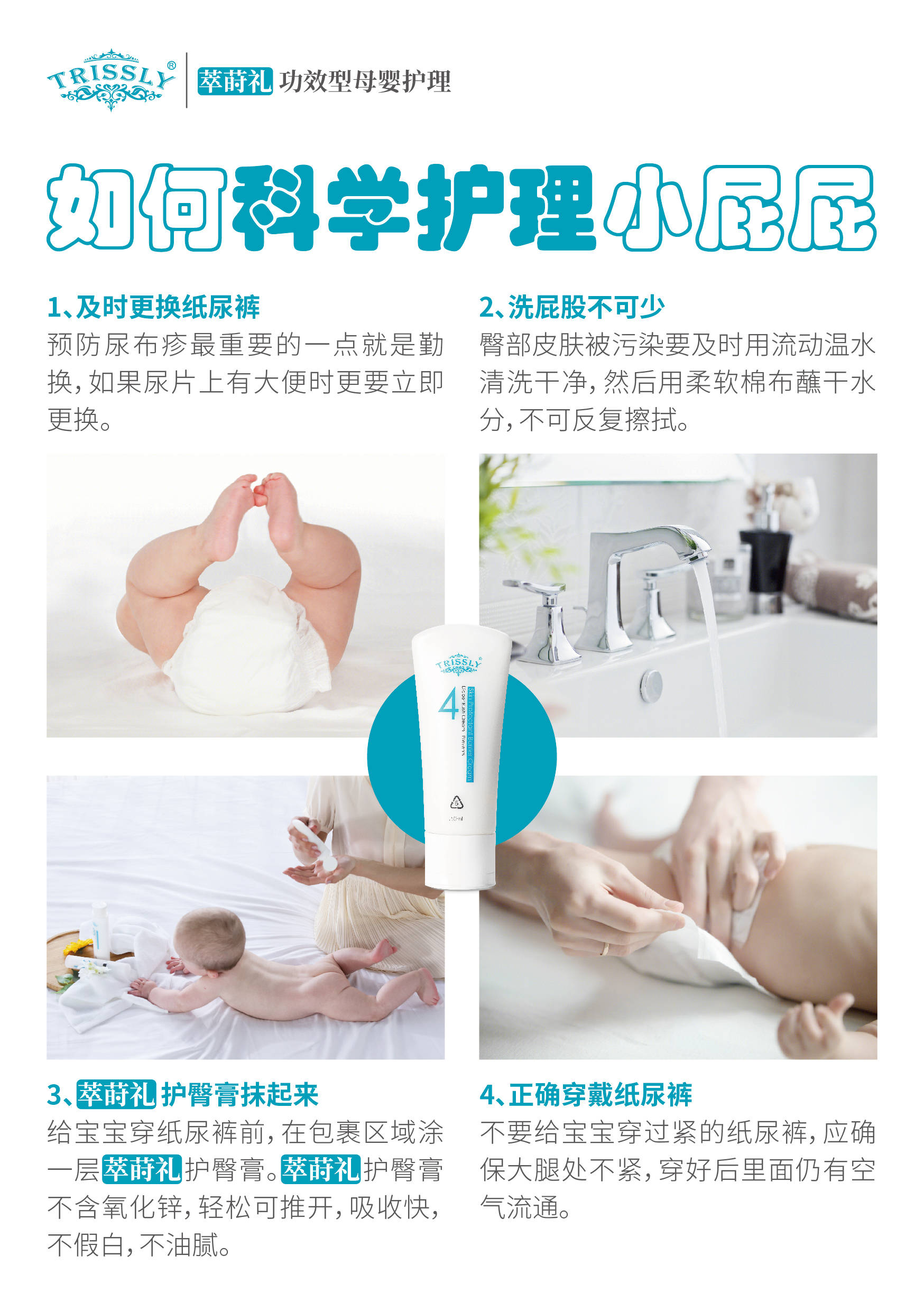 选对护臀产品是长效护臀的核心。萃莳礼护臀霜不含激素、香精、色素和重金属,避开常见过敏原,温和适配宝宝娇嫩肌肤。它添加的法国向日葵籽油能修护皮损,母菊花提取物可舒缓敏感,牛油果树果脂能深层滋润肌底,多重天然植萃成分协同作用,不仅能在肌肤表层形成保护膜,隔离尿便和摩擦刺激,更能滋养肌底,帮助强健宝宝脆弱的皮脂膜,提升肌肤自身抵抗力。