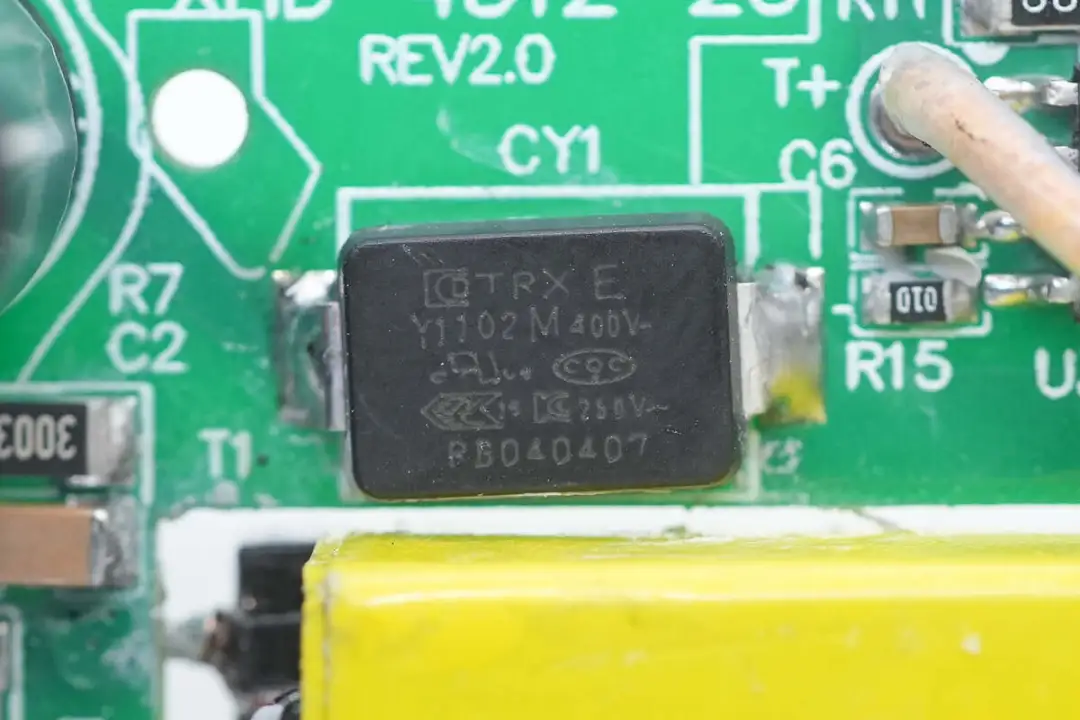 没有Y电容:充电器漏电风险大,充电时手摸外壳可能发麻。