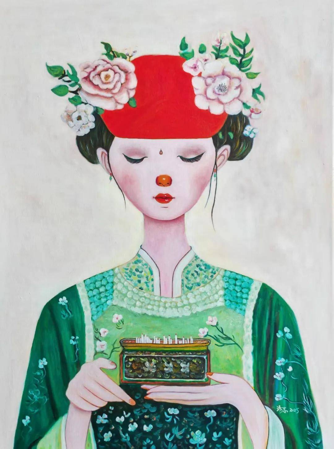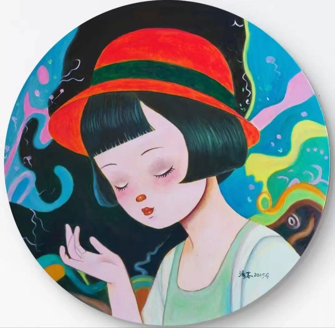 2025年,汤志参加多场线下艺术展:1月的张家界首届新国潮艺术展、5月的“绮梦婳语”中国女艺术家精品展暨第五届中国当代女子画会全国邀请展、7月的“碰撞•国潮新篇章”南京第二届国潮艺术展、8月的“新风起•破界生长”第三届当代潮流艺术展,以及9月的第15届中国宋庄艺术节国际版画艺术展与第三届新国潮精品艺术展。这些展览聚焦“新国潮”“潮流艺术”等核心关键词,与汤志的作品定位高度契合。其中,张家界首届新国潮艺术大展面向全国征集了1000余件作品,最终仅遴选137件进行展示,汤志的作品便是其中之一,足见其过硬的艺术实力。除了在各地艺术馆、美术馆、文化馆展出并可现场收藏外,汤志的作品也通过多个线上渠道向大众开放,包括部分艺术直播平台以及Artand等专业艺术品交易平台,让更多藏家能够更便捷地接触并收藏她的作品。