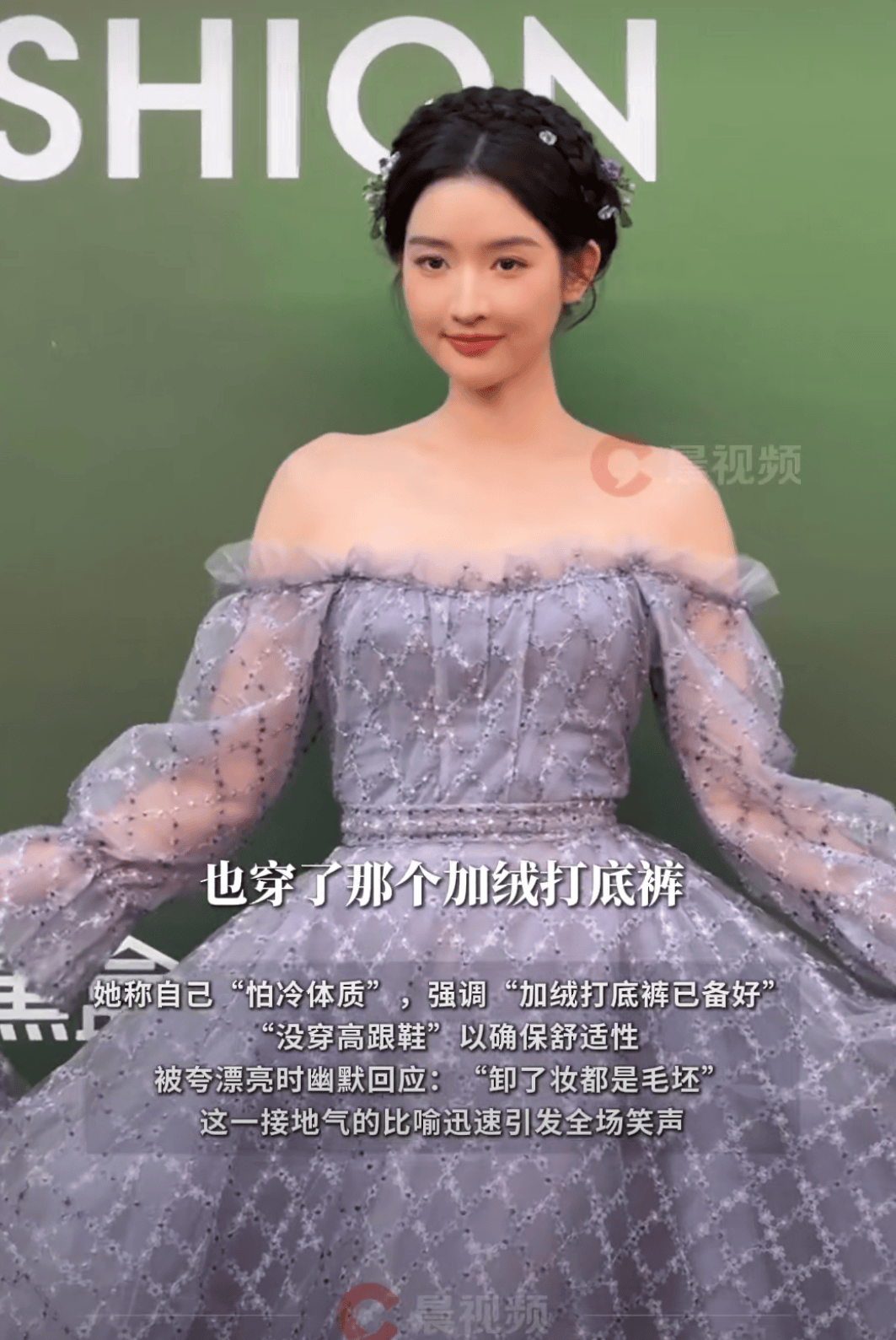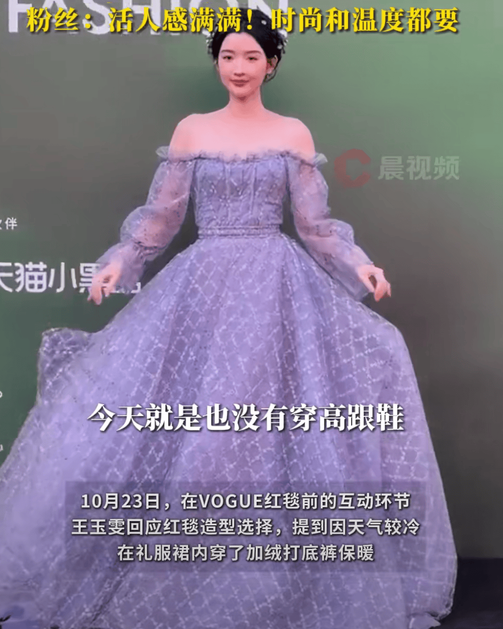 王玉雯一出场,那可不是一般的抢镜。按理说,这种红毯秀,大家不都是铆足了劲儿往自己身上堆各种高级定制、华丽珠宝,然后摆出一副“我是天仙下凡”的模样吗?但是王玉雯不走寻常路,她穿着一条淡紫色薄纱礼服,轻盈又飘逸,这礼服上还缀满了立体花卉刺绣,看起来就像从童话里走出来的小公主,让人挪不开眼。可就在大家准备为她疯狂打Call的时候,她自己先“揭了老底”,说“我这么美,但是因为天气太冷,我里面穿了加绒打底裤保暖。” 这下好了,全场瞬间就炸了。这就好比在一群精心打扮的模特中间,突然有个模特说“我这裙子下藏着秋裤”,那画面感,太戳人笑了。