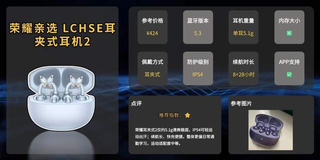 荣耀亲选在开放式耳机市场主打年轻、轻量和性价比路线,运动耳机技术偏基础实用;荣耀亲选LCHSE耳夹式耳机2在品牌中属于偏时尚外观、日常场景优先的定位。