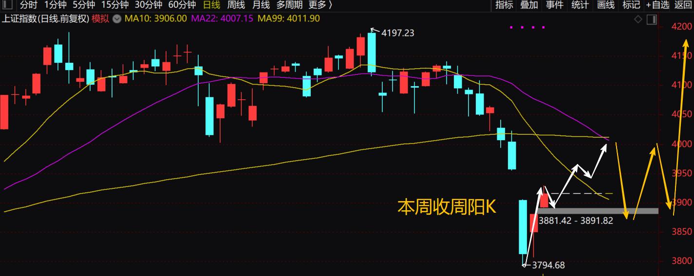 而关于大家最关心的反弹空间,这里也跟大家说句实在话,目前来看,反弹的时间和空间都还没有充分,今天打到5日线就横盘,属于正常的恐慌盘释放过程,不用过度紧张。但大家也别对反弹高度抱太高的期待,按照目前的走势,分两种情况来看:如果是强势乐观的状态,大盘大概率会顶着5日、10日、20日均线往上走,一直等到20日均线下穿99日线后,才会开始正式回踩,做右侧低点。