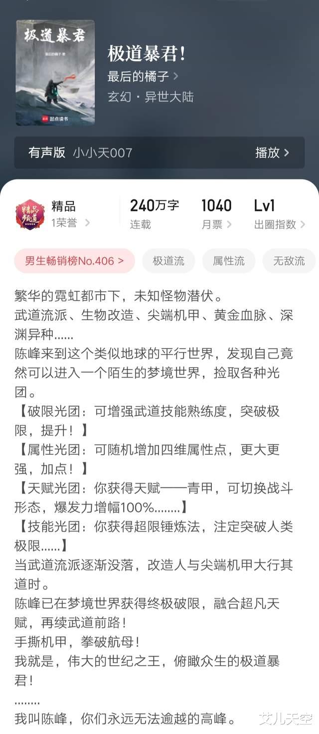 就是大家熟悉的那种滚开风格极道文,小说看成绩也在八千均以上,这类作品的读者市场也是很稳定的。