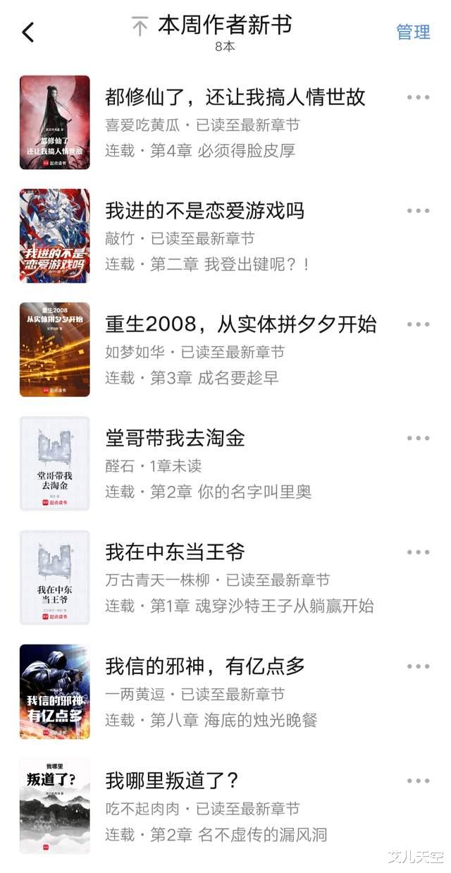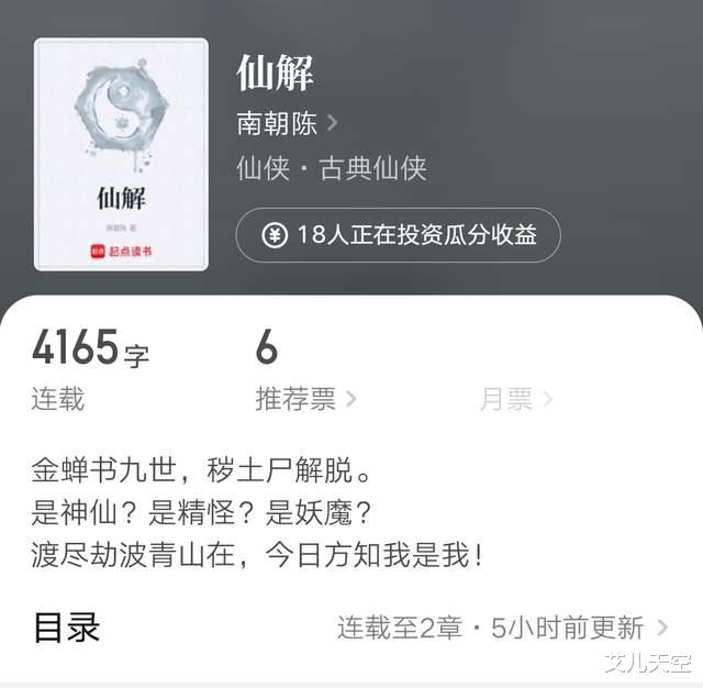 另外今天除了看到南朝陈开了新书,《长生从娶妻开始》的“喜爱吃黄瓜”、《尘中镜》的“敲竹”、如梦如华、醛石等作者也都上了新书,大家可以看看是否有感兴趣的。