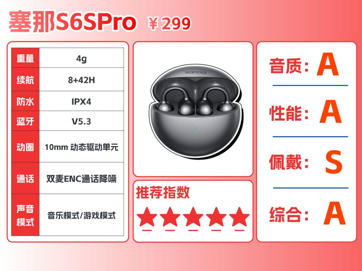 要是你最在意佩戴舒适度和续航,塞那 S6S Pro 值得多看看。它戴起来特别轻,没什么负担,续航也够长,基本功能都达标,想找一款能应对日常各种场景的耳机,这款不会出错。