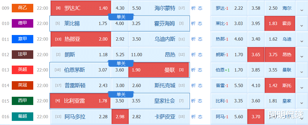 综合分析:本场比赛开出主让0.5球的数据,支持面给了莱红牛。综合来看,双方本赛季成绩都有提升,特别是霍芬海姆的进步相当大。在近年交手中,莱红牛在主场的优势较大,但最近主场比赛状态并不好,而霍芬海姆客场不败率相当高,结合数据变化分析,看好霍芬海姆不败。