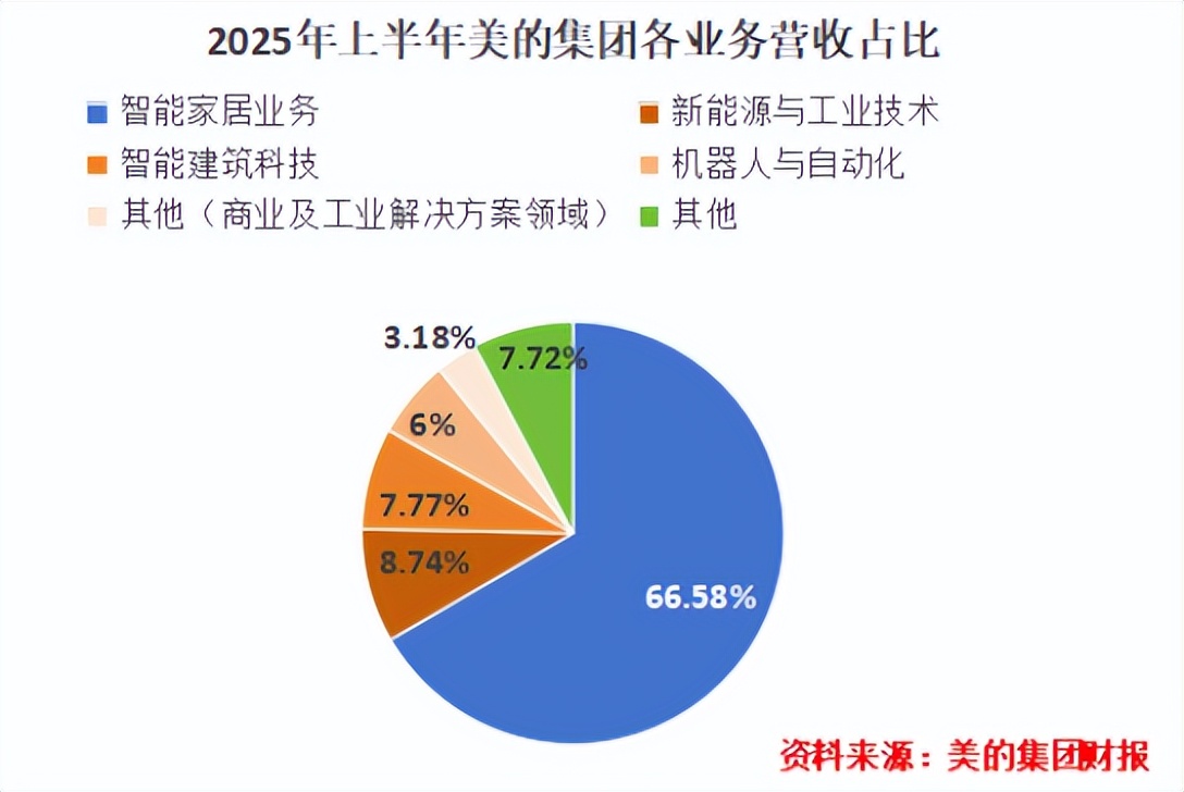 截至2025年上半年,公司新能源与工业化、智能建筑科技和机器人与自动化业务已经占据了不小的营收份额。
