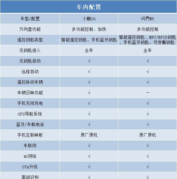 具体到车内功能方面,多功能方向盘、手机蓝牙钥匙、全车无钥匙进入、无钥匙启动、远程启动、遥控移动车辆和手机无线充电功能在两款车型上均有配备。此外小鹏G6还配备了方向盘加热和车辆召唤功能,问界M5则多出了NFC/RFID钥匙/可穿戴钥匙。而在智能互联配置上,小鹏G6和问界M5均配备了GPS导航系统、蓝牙/车载电话、原厂原机互联、车联网、4G网络、OTA升级、面部识别和语音识别控制系统。