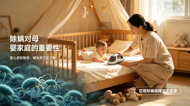 母婴家庭选哪种除螨仪?南方的潮湿天气,简直是螨虫的“温床”!回南天一来,墙壁冒汗,地板湿滑,床垫、被褥更是常年处于半干不湿的状态。就算你勤快得每周晒被子,也架不住空气里的湿度,被子收回来没多久又潮了,还带着一股挥之不去的霉味。更可怕的是,这种湿热环境正是螨虫疯狂繁殖的“天堂”——它们繁殖速度翻倍增长,数量多到你无法想象,家人频繁过敏、皮肤发痒、鼻炎反复,根源就在这里。